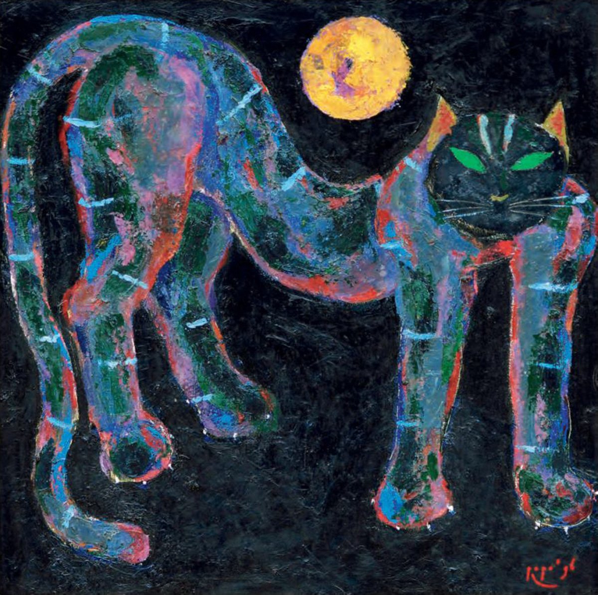 Popo Iskandar - Cat Est. 1968 100 x 95. Indonesian 1927 - 2000 West Java born artist Popo Iskandar 1927-2000 is best known for paintings inspired by nature that are rendered in bold colours and thick.